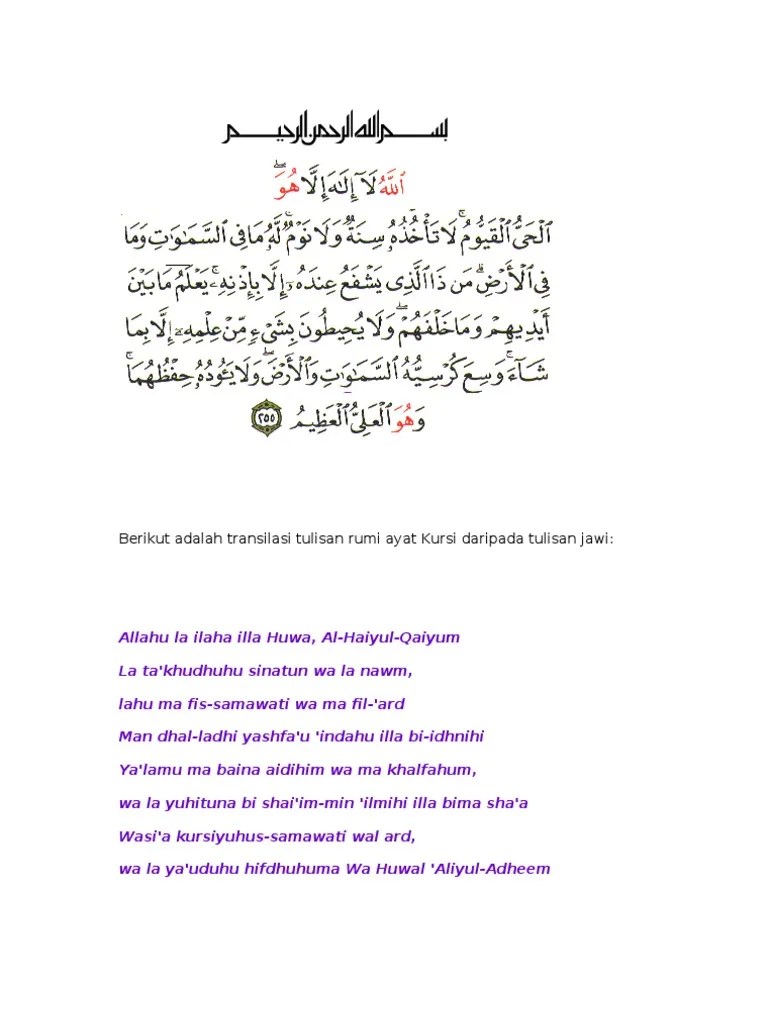 1,521,355 views dec 13, 2015 ….more.more . Cara baca dan bacaan ayat kursi / qursi (rumi & jawi). Untuk itu, admin kongsikan bacaan ayat kursi rumi. Ada segelintir dari kita yang tidak boleh membaca dalam jawi. Tahukah juga kalian tentang ayat kursi wakaf 9 ( . Tahukah kalian apa maksud terjemahan dari ayat kursi ini?